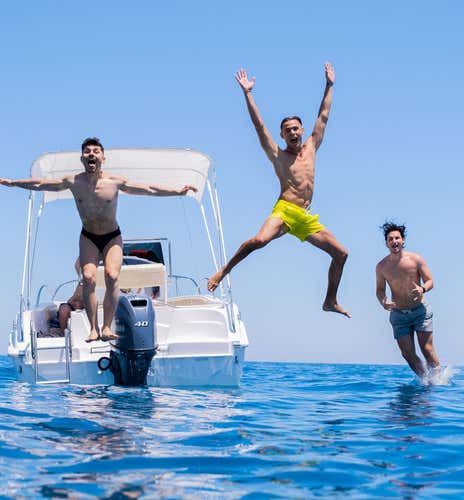 The boat is a 5.50 m long fibreglass boat that can accommodate a maximum of 6 people. It has a 40-horsepower Yamaha Supreme Getl outboard engine and is equipped with a double sundeck, sun canopy, life jackets, ring life jacket, first aid kit, memory form cushions, 6 kg anchor with chain, gps system.