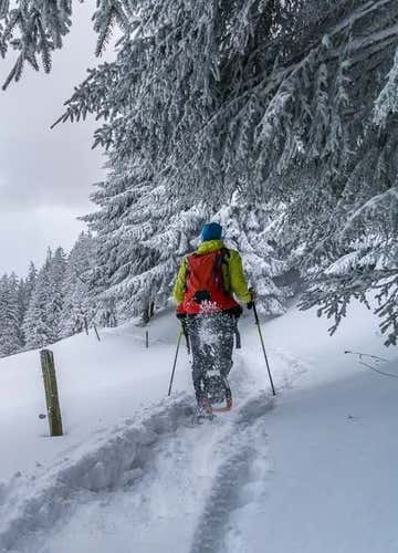 We will walk between 2 and 5 km with snowshoes on our feet, with a maximum altitude difference of 150/200 m, through high forests of larch, coniferous, spruce and pine trees. We will stop to observe animal tracks in the snow, learning to recognise the inhabitants of the mountain. The silence of nature will envelop us completely, broken only by the treading of snowshoes on the snow.