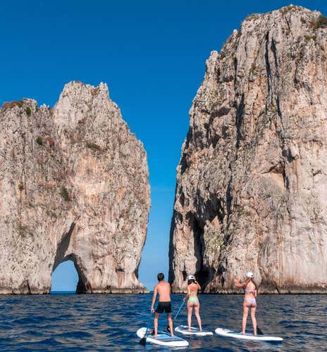 - Join a SUP excursion to discover the caves and beaches of the island of Capri