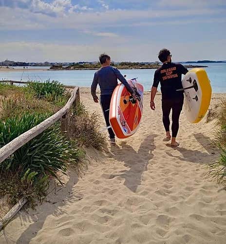 We will meet in Santa Maria al Bagno, in the province of Lecce. Here we will meet the instructors for a short briefing, a sort of mini-lesson lasting about 15 minutes. During this time we will be taught how to stay balanced on SUP boards and how to paddle properly.