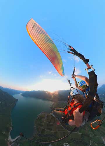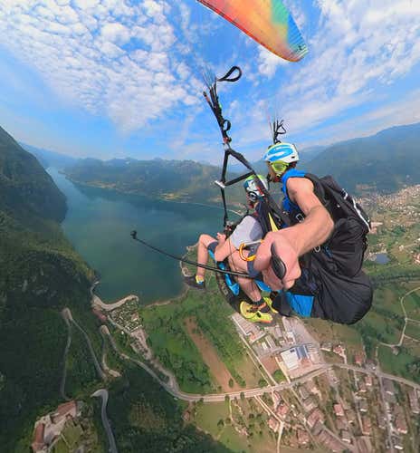 Tandem paragliding flight over Lake Idro