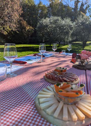 The wine-tasting experience is reserved for adults only. Minors may participate in the tasting experience free of charge; water and juice will be available for them. If you would like a chopping board for them, you can request it after confirmation of your booking and pay for it on site at a cost of €6.