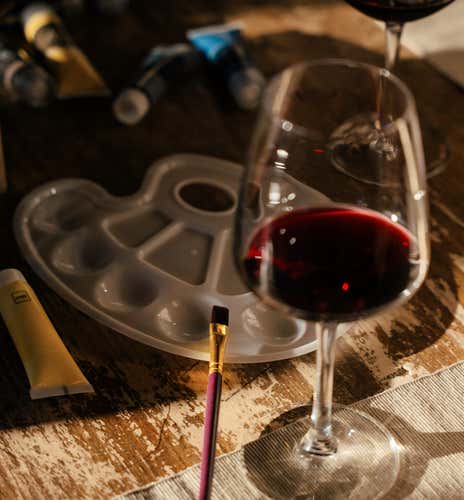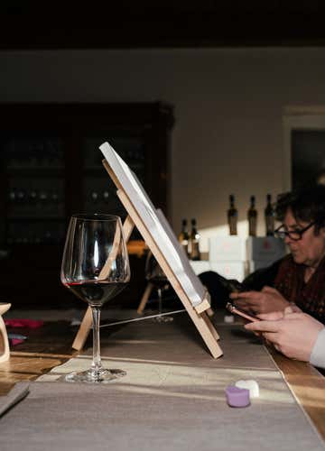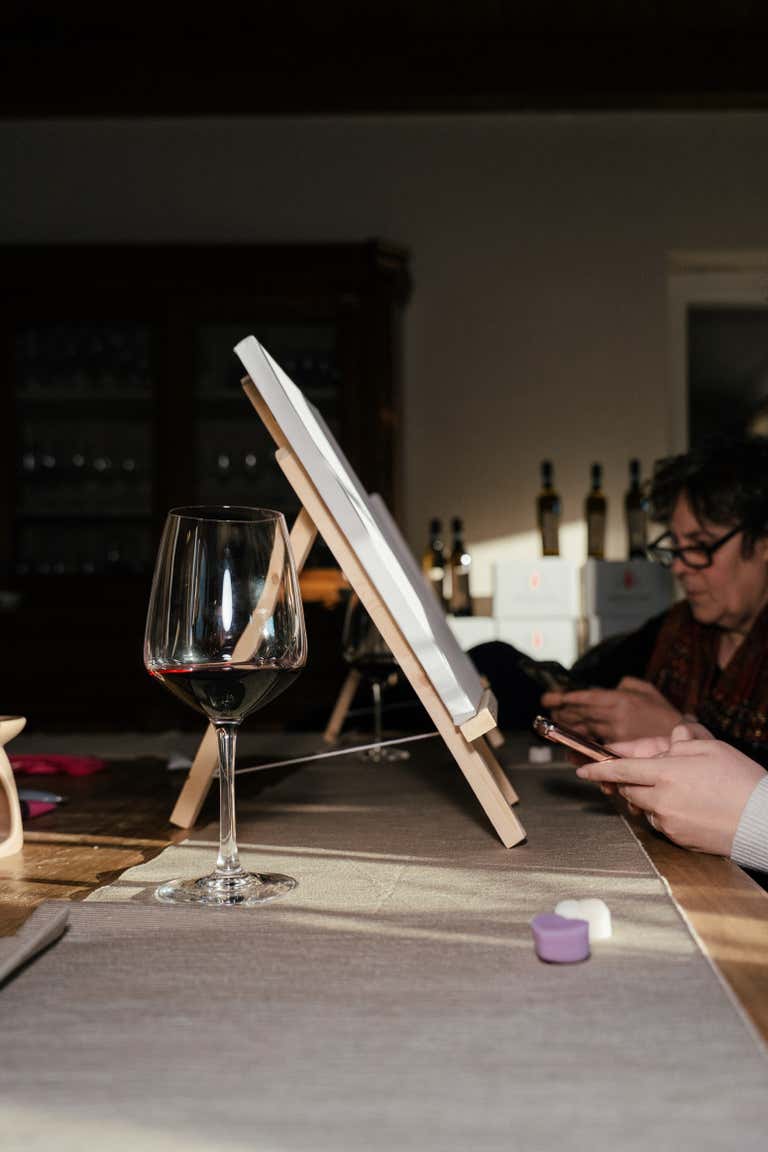 - Paint the canvas while sipping a glass of wine accompanied by typical products