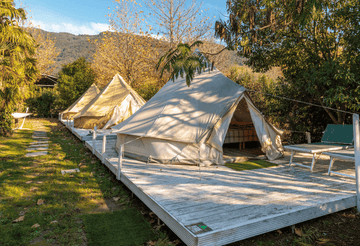 Glamping consists of a series of Bell Tents, luxury tents set in a beautiful natural setting. A new way of understanding camping, combining aesthetics and sustainability.