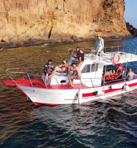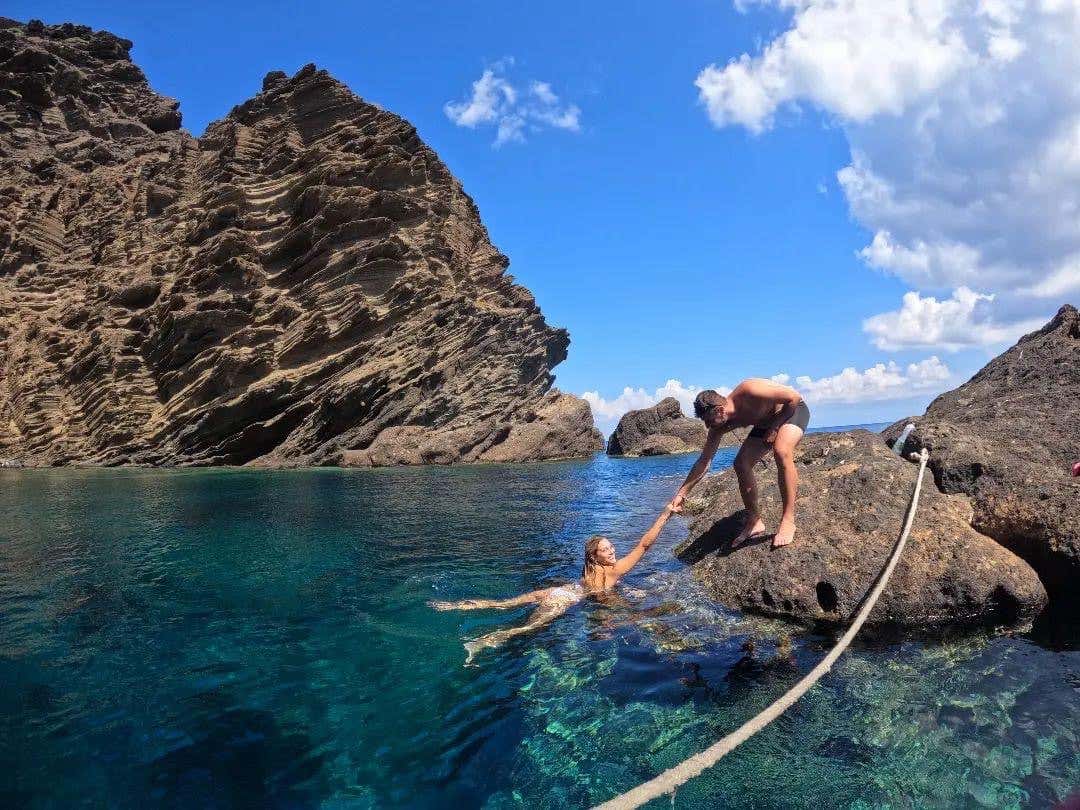 In the company of an experienced local crew you will explore every corner of this volcanic island, between turquoise waters and sheer cliffs.