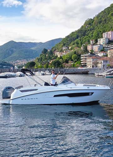 The rendezvous is in Como, at the time selected during the booking process. The captain will welcome us and seat us on the Karnic SL 651, a modern 8-metre motor boat.
