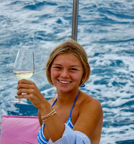 - End the day toasting on board in front of the spectacle of the sunset at sea