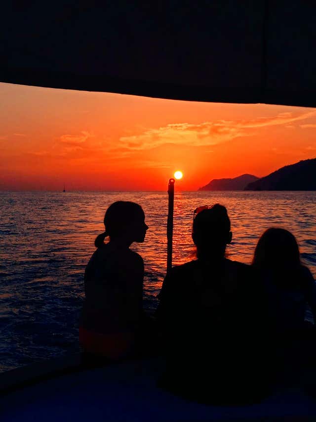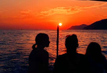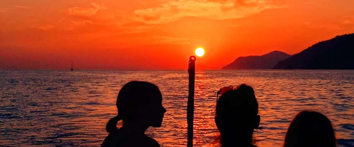 Set sail at sunset from Manarola aboard the gozzo Obelix for an unforgettable tour of the Cinque Terre.