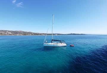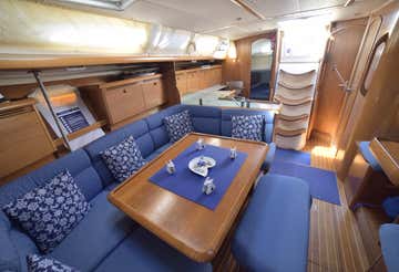 The boat is a Sun Odyssey 43 Legend sailboat, 14.50 metres long and 4.20 metres wide. It is equipped with a shaded area, dinette, cushions, toilet, shower and music speakers on board.