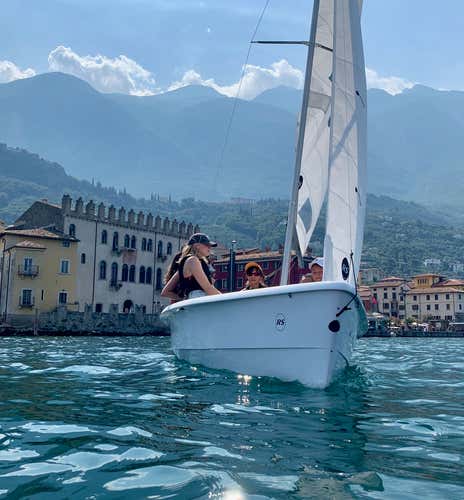 Once we have gathered all the participants, we will set sail and head towards the Veneto shore of Lake Garda. Depending on wind conditions, we may stop at the ancient Scaligero Castle in Malcesine, or atTrimelone Island, home to a former military base used in the First and Second World War. Or the Limonaia del Pra de la Fam and Val di Sogno, which is also overlooked by the enchanting Isola dell'Olivo.