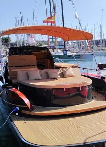Theboat is a cabin cruiser, 10 metres long and 3.7 metres wide, with a speed of 18/20 knots and equipped with a freshwater shower, toilet, awning, minibar and sundeck.