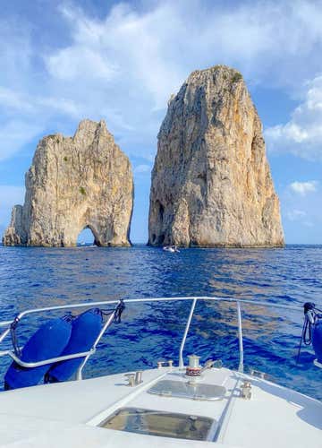 We will reach the most important and characteristic places, such as the Grotta Bianca, the Grotta Verde, the Grotta del Corallo and the Punta Carena Lighthouse. The iconic Natural Arch and the famous Faraglioni, the symbol of Capri, cannot be missed. The visit to the Blue Grotto is not guaranteed, it will depend on sea conditions and waiting times; the cost of the entrance ticket will be payable locally (18€).