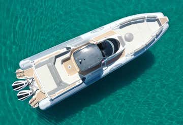 - 12-metre inflatable boat Altamarea Wave 35 for up to 12 participants, equipped with two 250 hp engines, toilet, shower, sundeck at the bow and stern and awning.