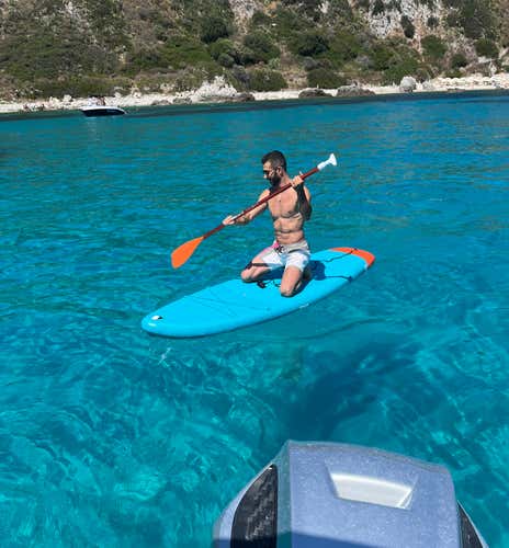 You will be on board a modern 9-metre-long dinghy equipped with two powerful 200 hp engines, awning, sunbathing area, fridge, and shower. SUP and snorkelling masks are available for participants on board.