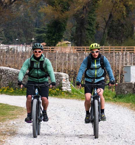 The meeting point is 15 minutes before the time chosen in the booking process at Vason. Here the guide will be waiting for us to hand over the front e-MTBs and give us a briefing on the route.