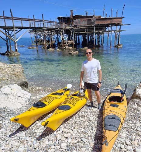 The experience will begin with a briefing of about 30 minutes during which I will explain to you the basic paddling techniques for paddling a kayak independently, without any worries. Once we are familiar with the equipment, we will be ready to venture into the water to discover the Costa dei Trabocchi. And yes, we will pass right under the Trabocchi with our kayak!