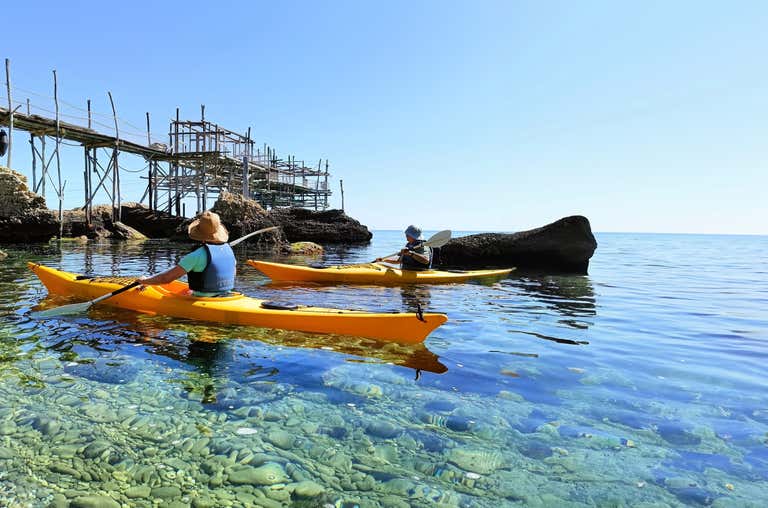 Not only can you spot many of them, you can actually pass underneath them by taking part in our kayak tour. Our guide has designed a route to discover the main attractions of the Costa dei Trabocchi, with a swim stop at a natural pool.