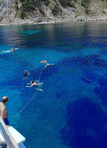 But the nice surprises of the tour don't end there. Once back on board, we will head towards the Blue Grotto near which we will make our third bathing stop of about 20 minutes. Around this time the sun, penetrating through the cracks in the rock, makes the water in the cave particularly transparent and creates suggestive plays of light on the walls and seabed.