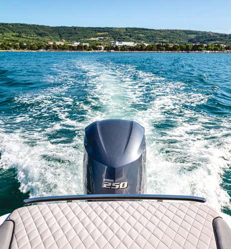 You know aboard theAlfastreet 25, a luxurious 8-metre long open boat from 2023 with a 250 hp engine. It is equipped with a sunbathing area, awning, teak cockpit, external refrigerator, Bluetooth stereo system, USB socket, and climbing ladder.
