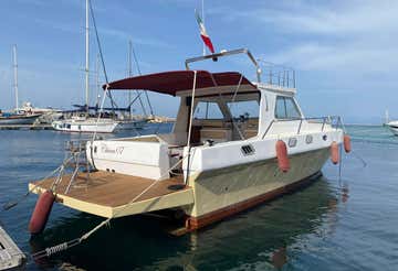 Chicca is a 12-metre-long motor boat equipped with a sun deck on the roof with cushions, a large awning, a sundeck at the bow, a freshwater shower, toilets and a stereo to listen to music during the excursion. In addition, snorkelling sets, life jackets, boards and swimming aid sets are also available to passengers. The boat can accommodate a maximum of 22 passengers, plus 2 crew members.
