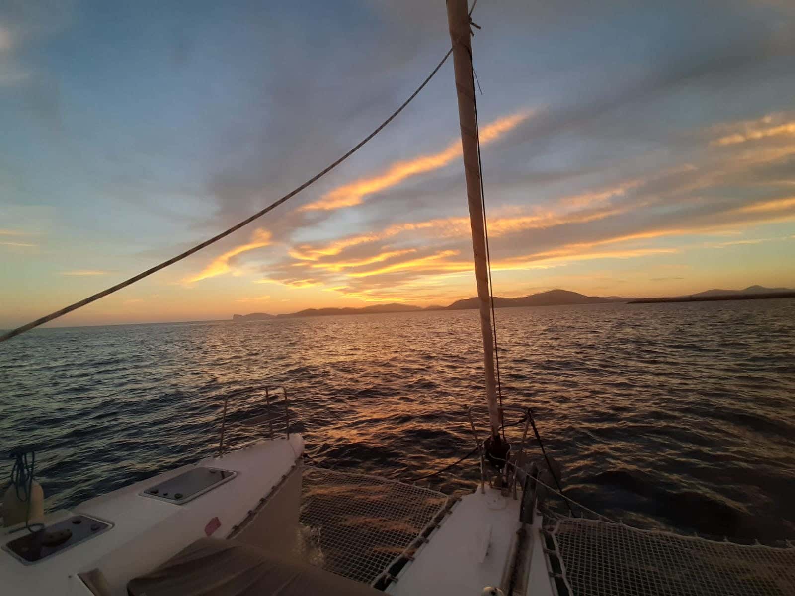 Enjoy anexclusive catamaran experience and admire a romantic sunset over the Sardinian sea .