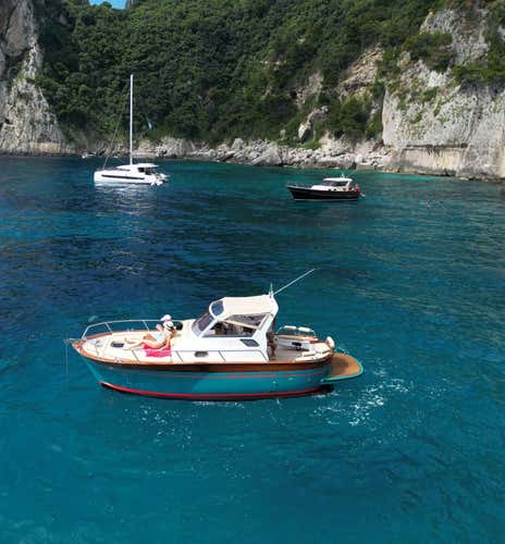Just join our private gozzo tour: in the company of a skipper at your complete disposal, you'll set sail from Sorrento to the island of Capri. You'll be able to circumnavigate the island while comfortably enjoying the navigation, stopping for swim or shore stops at your leisure.