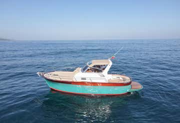 Theboat is an 8-metre-long Sorrentine gozzo equipped with a freshwater shower and toilet.