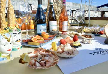 The 'party' will continue on board with a wine tasting (included): you will enjoy four glasses of wine (red, rosé, white and sparkling Etna) from the renowned Cantina Tornatore and Cantina Gambino, while a dedicated sommelier will explain the main characteristics. This will be accompanied by anaperitif of fish crudités (included).