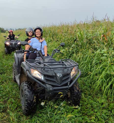 First, we will listen to a briefing on the use of the quad bike, after which we will put on our helmets and be ready to go! From the farm, we will drive through green country roads and wooded areas, interspersed with clearings.