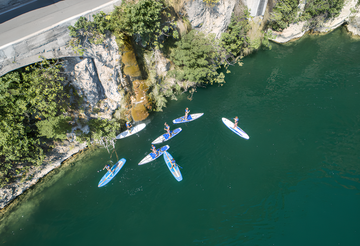 Each on his or her own SUP, we will set off on a 2-hour tour of the lake. Paddling alongside our fellow adventurers, we will arrive at theOrrido di Riva di Solto, an imposing rock wall that falls sheer into the water, which you can visit. You will appreciate the view of the lake from vantage points unreachable from land and, if you wish, enjoy a refreshing swim.