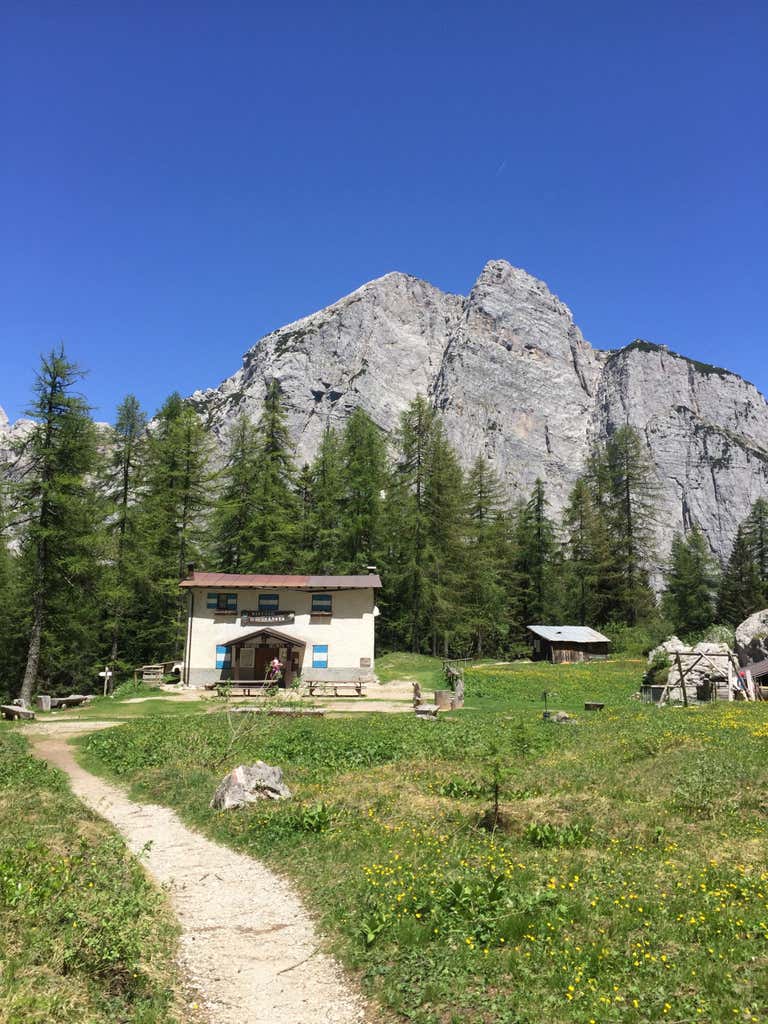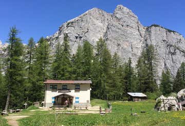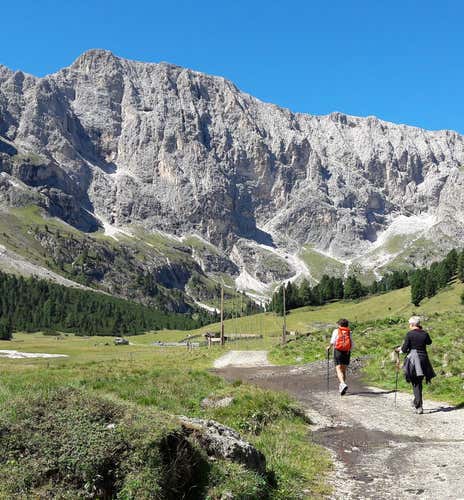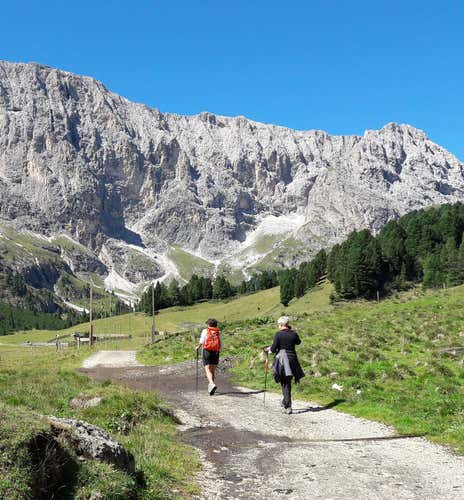 Here we will finally be able to relax on thewide plateau surrounded by fir trees and Dolomite peaks, admire and photograph the panorama and have lunch at the hut or a packed lunch on the meadow.