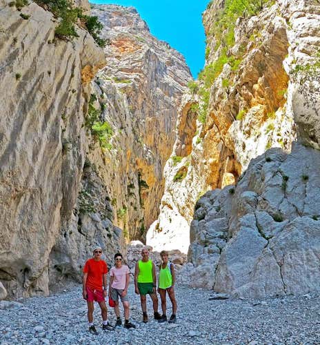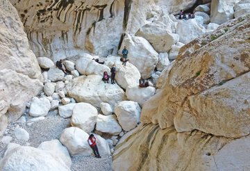 As we continue with theexploration of the gorge, the excursion becomes more challenging: we will have to use our hands in order to overcome the large boulders lying on the bed of the Rio Flumineddu.