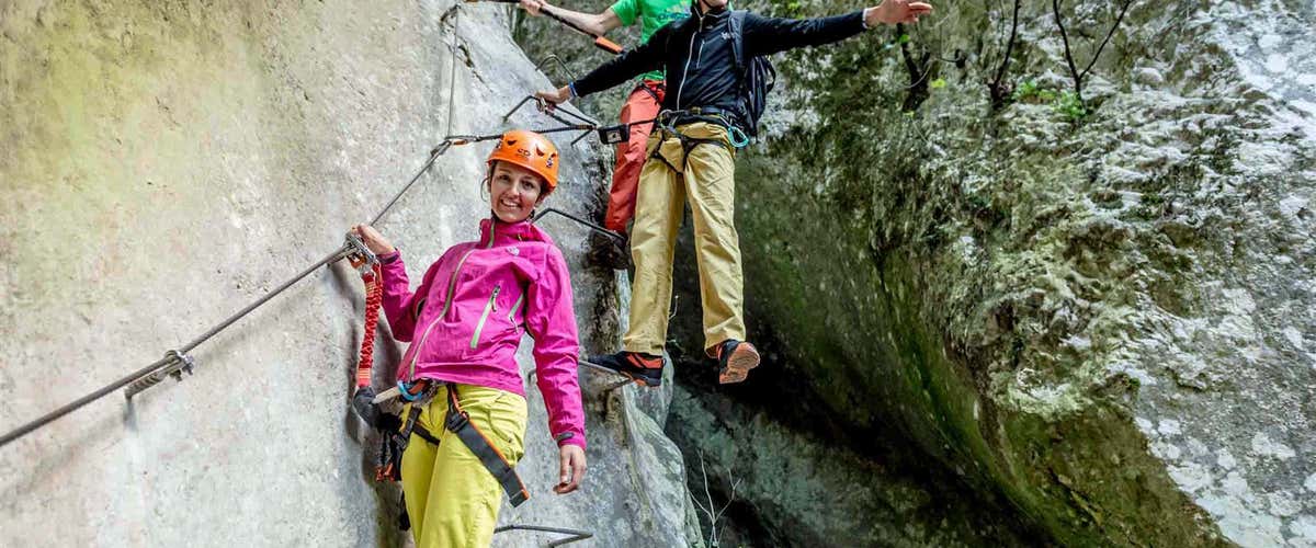 This via ferrata is of an easy level and is suitable for everyone, even as a first experience. All that is required is a good general physical condition and theabsence of vertigo or fear of heights. Children with aminimum height of 140 cm may also participate.