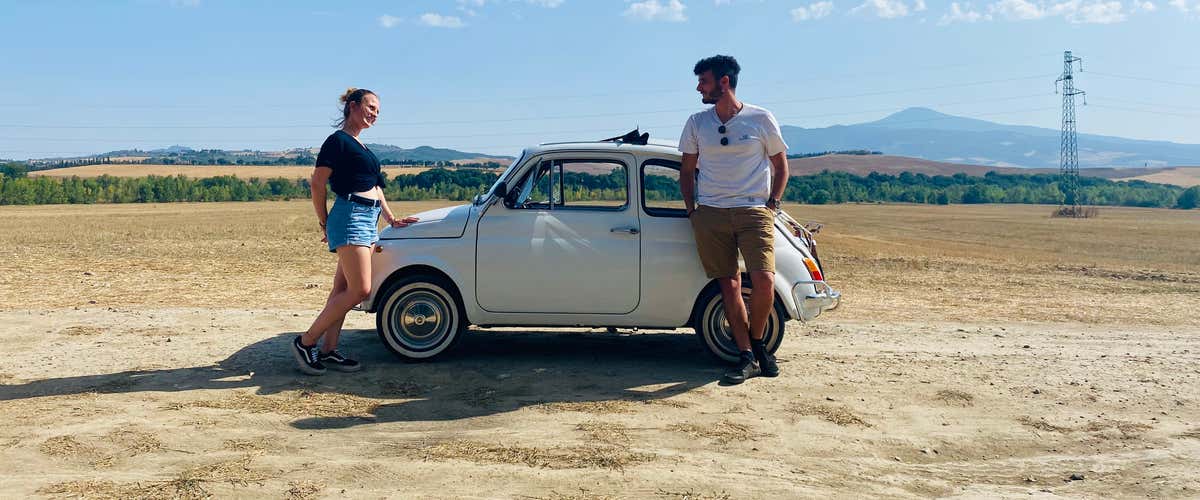 Vintage car rental in Pienza in the heart of the Val d'Orcia