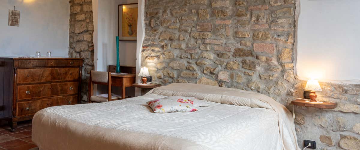 On arrival you will receive the keys to your double room: located inside a characteristic renovated stone farmhouse, the room has a private bathroom, shower or bath, hairdryer, liquid soap for hands and body, heating and Wi-Fi connection.