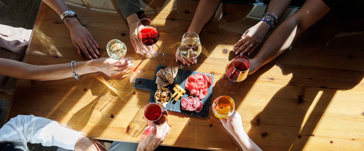 - Choose a tasting of 3 or 4 DOCG and IGT glasses with a selection of local products