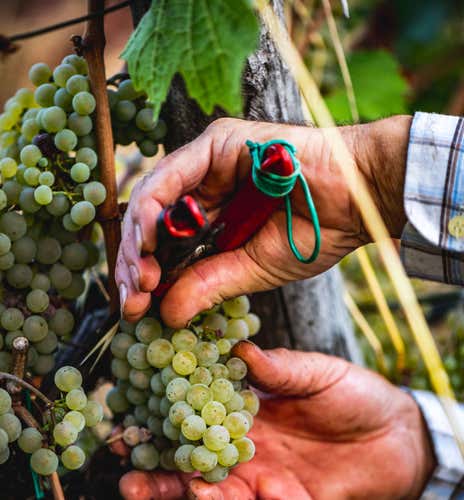 Finally, we will move on to the tasting room, a cosy environment with a wonderful view of the vineyard. If the weather is favourable, we will sit outside on the panoramic patio. Here we will taste two wines from the classic line from the vineyards we visited, discovering how care for organics and experimentation have led to the creation of excellence.