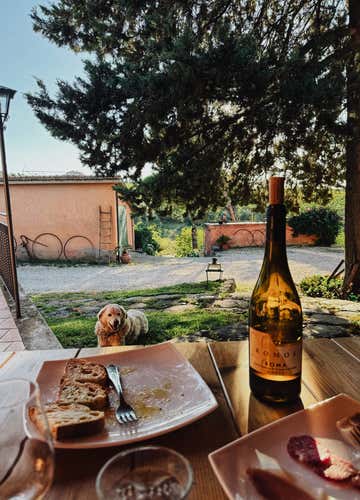 We will then reach the room that will welcome us for the tasting: the guide will serve and describe 2 glasses of house wine to choose from white, rosé and red. The toast will be accompanied by bread topped with home-produced olive oil and locally produced salami.