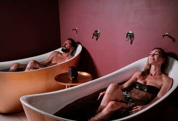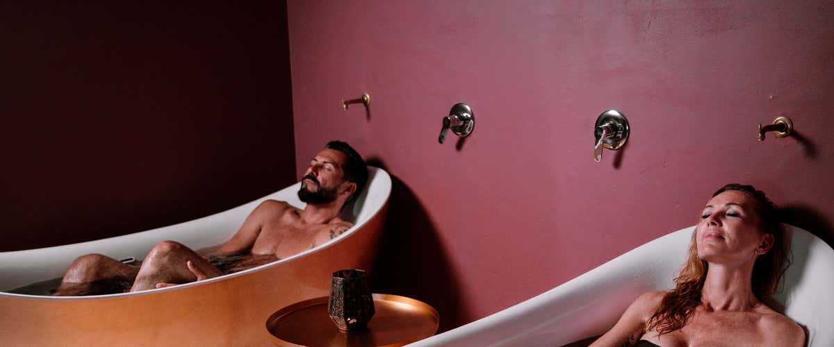 And proving it is our wine therapy experience for couples: a body scrub and wine bath, a treatment that uses the cosmetic properties of grapes and wine to counteract ageing of the skin.