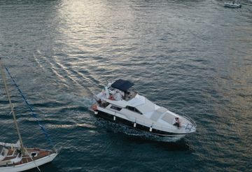 - San Lorenzo 40, motor boat 13 m long, max. capacity 15 people, equipped with bathroom, 2 cabins, galley, large sunbathing area, shaded aft area, shower, Bluetooth system
