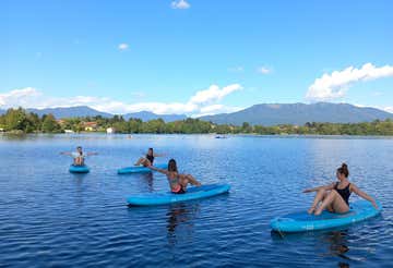 Paddle through the clear waters of Lake Monate until you reach a quiet corner where you can meditate. And then, listening to the teacher's voice, have fun doing as many yoga positions as possible on the board!