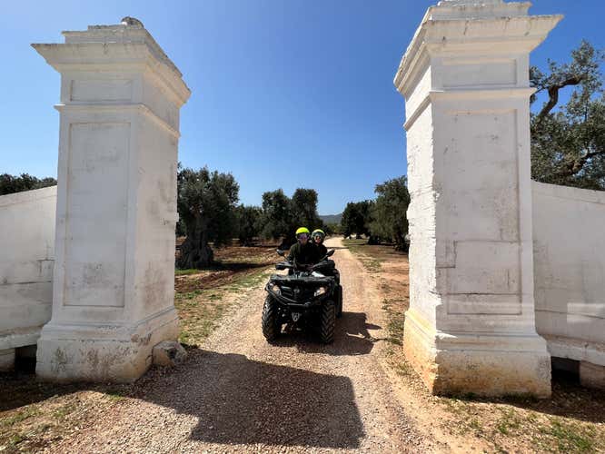 The experience I chose to give my boyfriend was really exciting. We enjoyed the friendliness of the staff who followed us on the excursion, the breathtaking scenery of the Monopoli countryside and the length of the tour. It was a fun, carefree and valuable three hours. The final aperitif at the masseria added an extra touch to the day. The cost is absolutely proportionate to the value of the activity, which takes place entirely on a quad bike and allows you to cross the land in all its uniqueness, from the sea to the farms with olive and carob trees. I really recommend it, we are super satisfied
