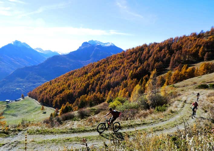 Get your backpack ready: a 2-day e-bike adventure awaits you in the heart of the Aosta Valley! You'll set off from Courmayeur to ride to a panoramic refuge in the pastures of Mont Fallère, where you'll spend the night in reserved rooms. After a typical Valle d'Aosta dinner and a night at altitude, the following day you will pedal downhill until you reach the historic centre of Aosta, crossing alpine paths, forests, vineyards and ancient Roman roads.