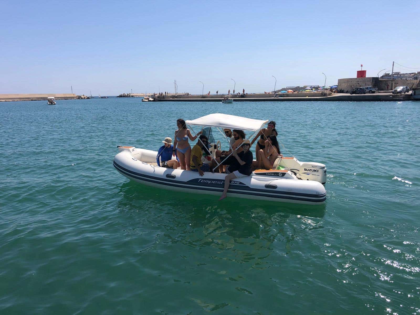 Rent a 5.70 m, 40-hp dinghy in Bisceglie and freely explore the Apulian coastline in the company of your crew of up to 8 passengers. With no boat licence and a sea to explore, get ready to experience 4 or 9 hours of absolute wonder.