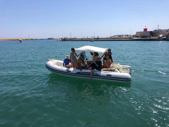 Rent a 5.50 m long motor boat with a 40 hp engine in Bisceglie and explore the Apulian coast in freedom in the company of your crew of up to 7 passengers. Without a licence and with a sea to explore, get ready to experience 4 or 9 hours of pure wonder!