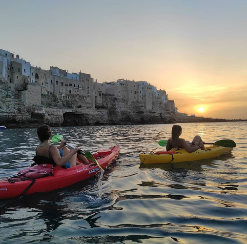 Discover the marvellous town of Polignano a Mare from the perspective of the sea, navigating the crystal-clear waters on board a kayak. Applying the paddling technique that the instructor will be pleased to teach you, you will feel no fatigue and will be able to enjoy the beautiful landscape, approaching the caves and reaching the majestic Grotta Palazzese. You will also be able to take a swim, weather permitting, to cool off and have fun in the water.