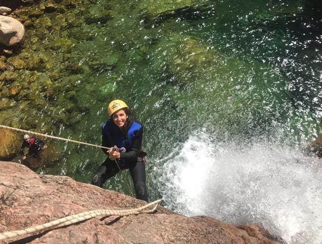 Activity carried out in a small group of 7. Despite the heat and the initial fatigue, it was a wonderful experience, green landscapes, very fresh water, a lot of fun doing each step. Marco, our guide, helped us through each step, making everything really accessible