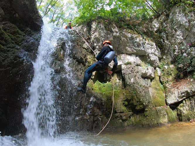 Awesome activity. Canyoning, rappelling and jumping. Lorenzo is a great guide. Lots of fun.