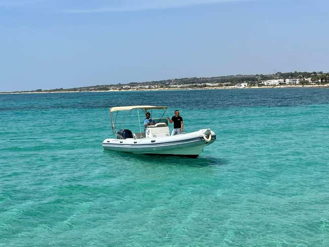 Hire a 6.50 m, 150 hp dinghy to venture into the Salento sea with your company of up to 12 participants! Rental is available for half or full days, at your choice. With a licence you will be able to navigate the sea independently; without a licence you will need the mandatory participation of a skipper.