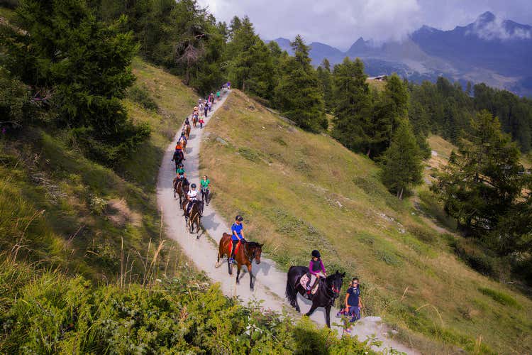 Horse riding along the Ru Courtaud in Val d'Ayas with aperitif
